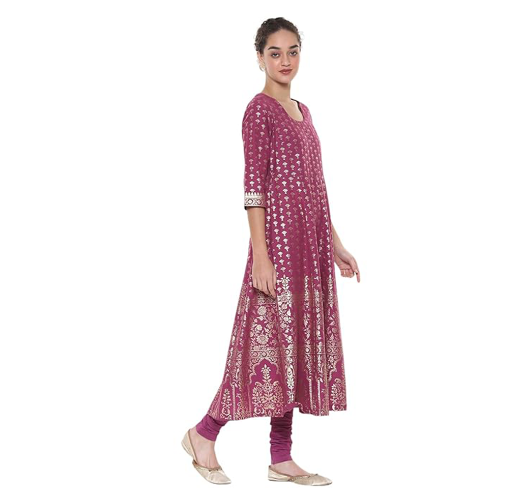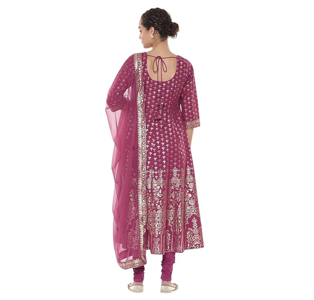BIBA Women Cotton Anarkali Printed Kurta Churidar Suit Set