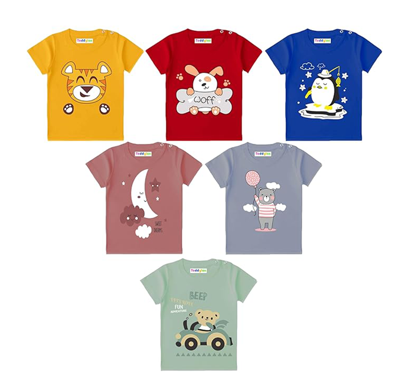 Baby Boy's and Baby Girl's Cotton Blend Full Sleeves Printed T-Shirt Multicolor Pack of 6