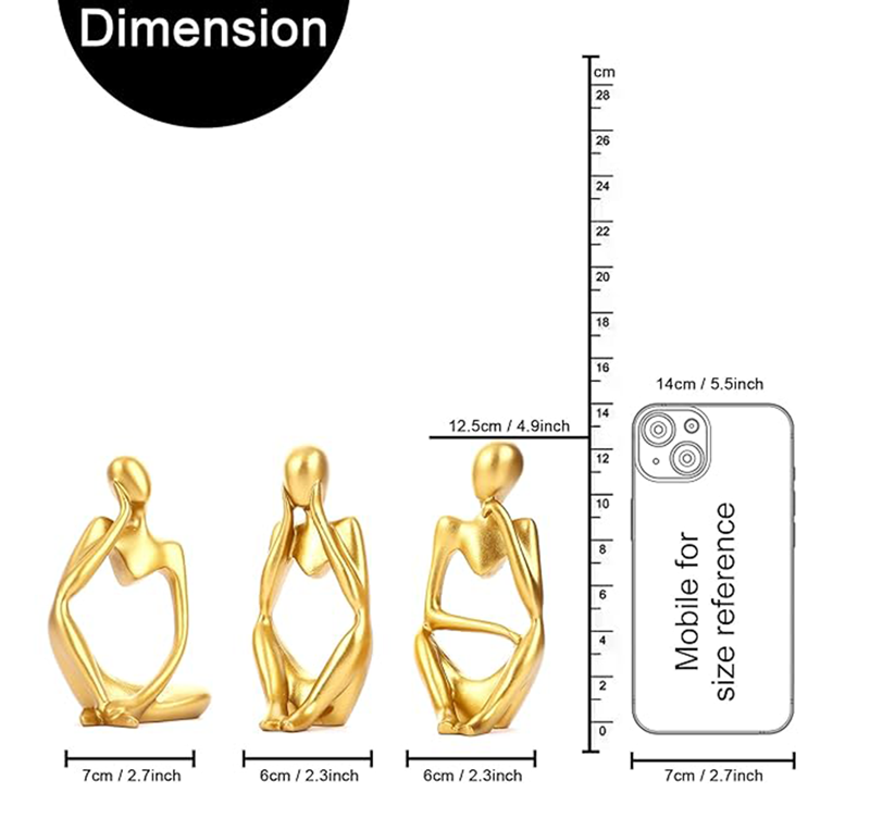 Decorative Abstract Thinker Men Statue Set of 3 Modern Art Showpiece Sculpture