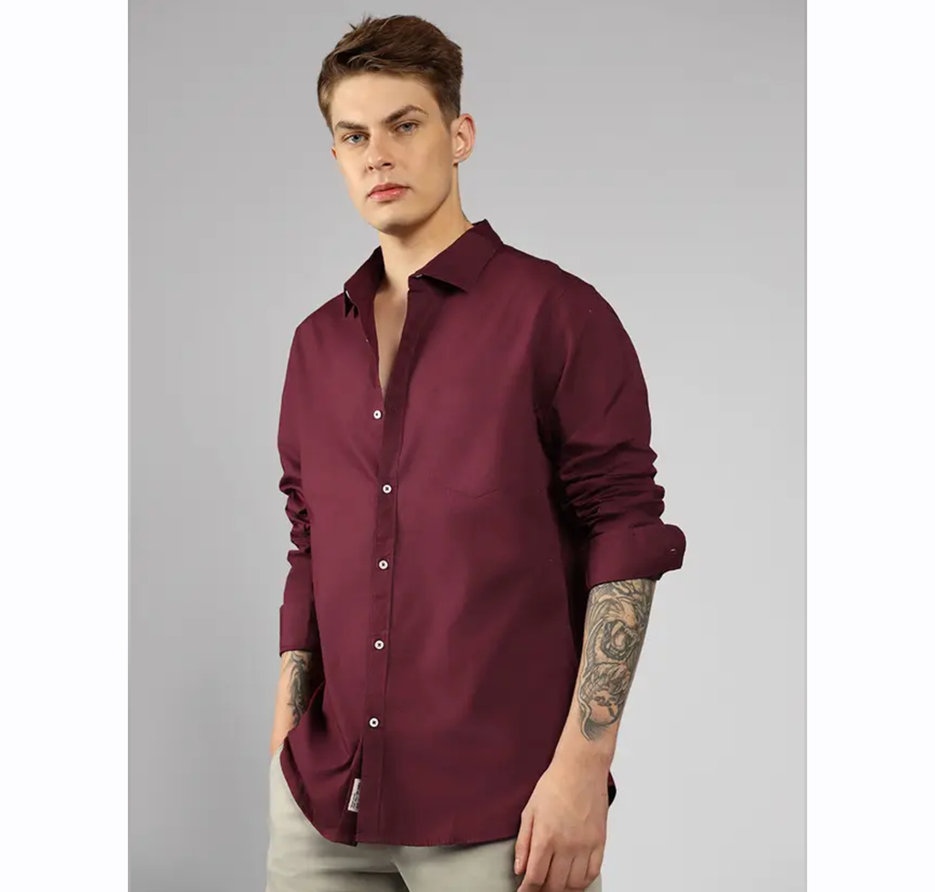 Men’s Slim Fit Solid Casual Shirt | Spread Collar | 100% Cotton