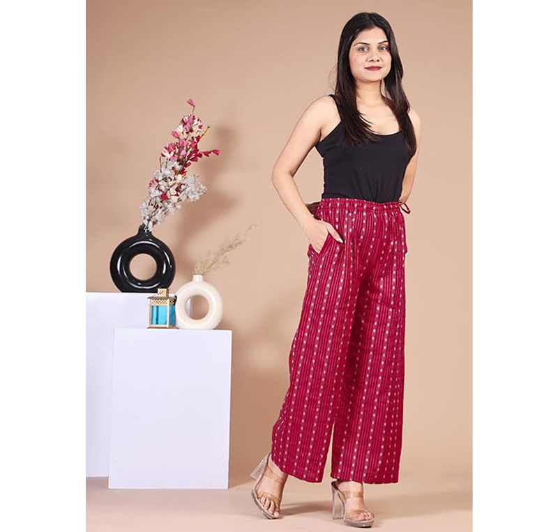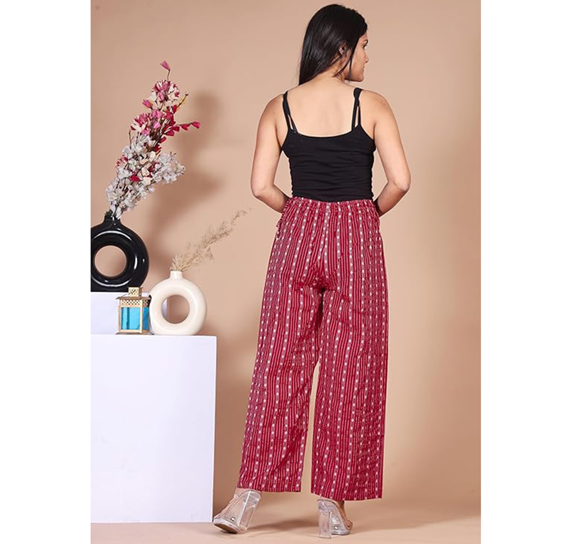 Pistaa's Women's Regular Fit High Rise Cotton Flair Printed Regular Palazzo